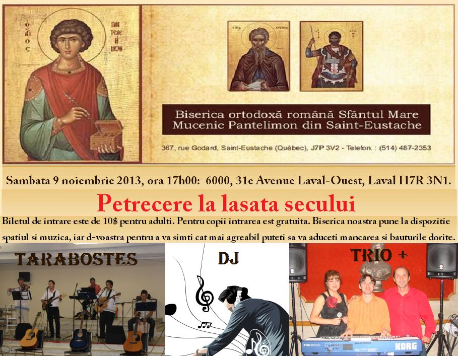 Duminica 21 iulie 2013 va invitam cu mare drag sa sarbatorim impreuna Hramul Bisericii Sfantul Pantelimon.